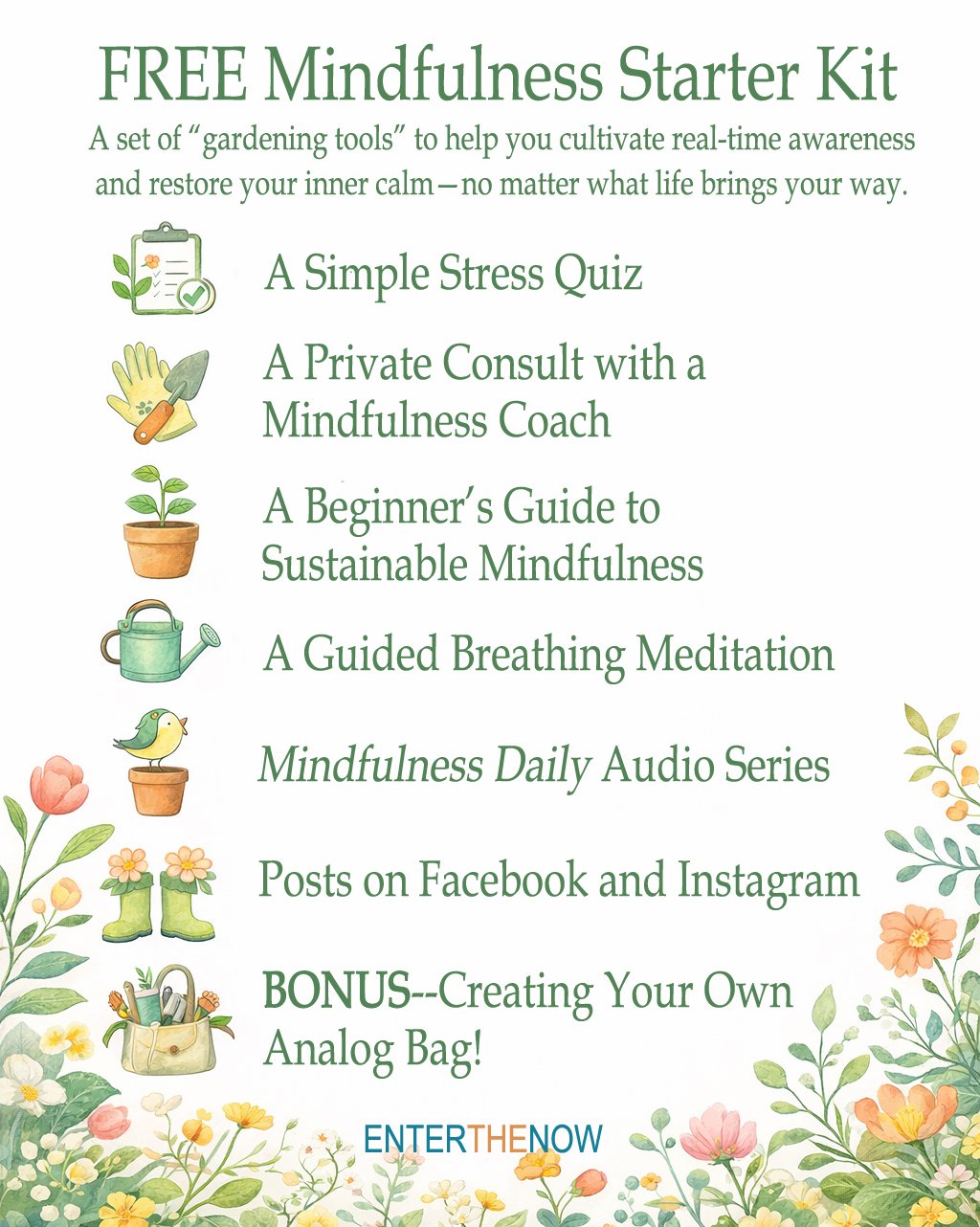 Interested in mindfulness but not sure where to begin? Start right here—with this Mindfulness Starter Kit. It features the basic “gardening tools” you’ll need to begin your practice. It’s all completely FREE!
